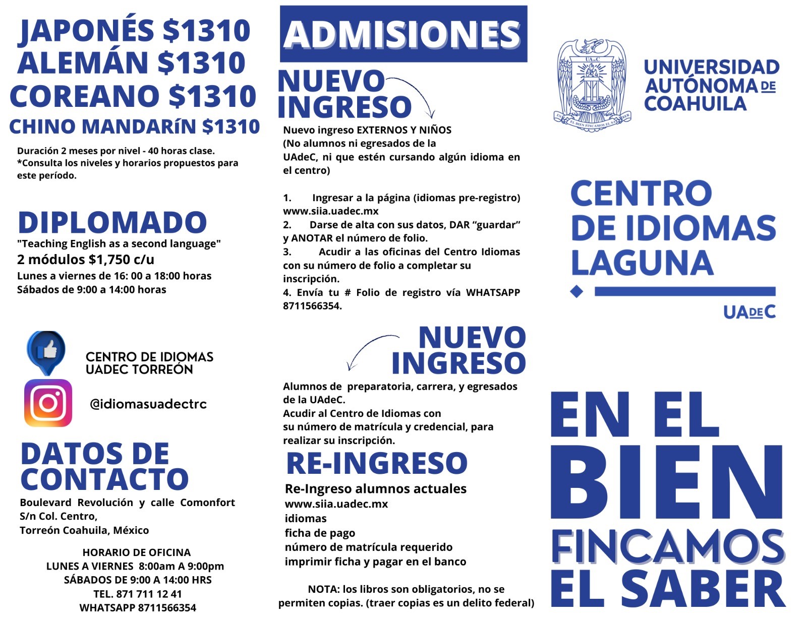 #UAdeC. Inscríbete a los Cursos de entre Semana y los Sabatinos que el Centro de Idiomas UAdeC UL te Ofrece