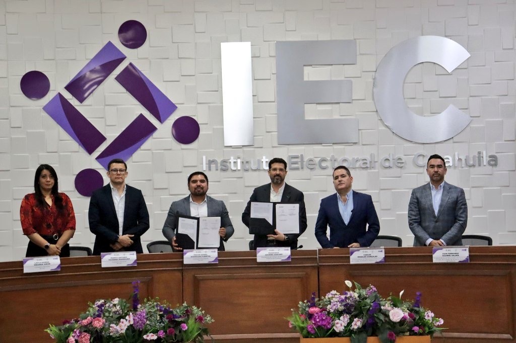 Además, en la firma del convenio se contó con la asistencia del notario Eduardo Sosa Ferrer; María Teresa Nares Cisneros, Contralora Interna del IEC; miembros del Colegio de Notarios Públicos de Coahuila y funcionariado del Instituto.