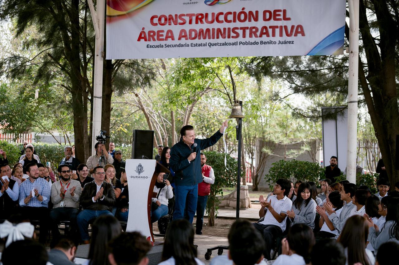 Durante su mensaje, Esteban llamó a los estudiantes a perseguir sus metas sin miedo: “La diferencia entre hacer algo ordinario o extraordinario está en ese toque de locura y riesgo para hacer lo que otros no se atreven. No le tengan miedo a nada, todo se puede”. Destacó además que Durango es el único estado que entrega uniformes gratuitos para promover igualdad entre los alumnos.