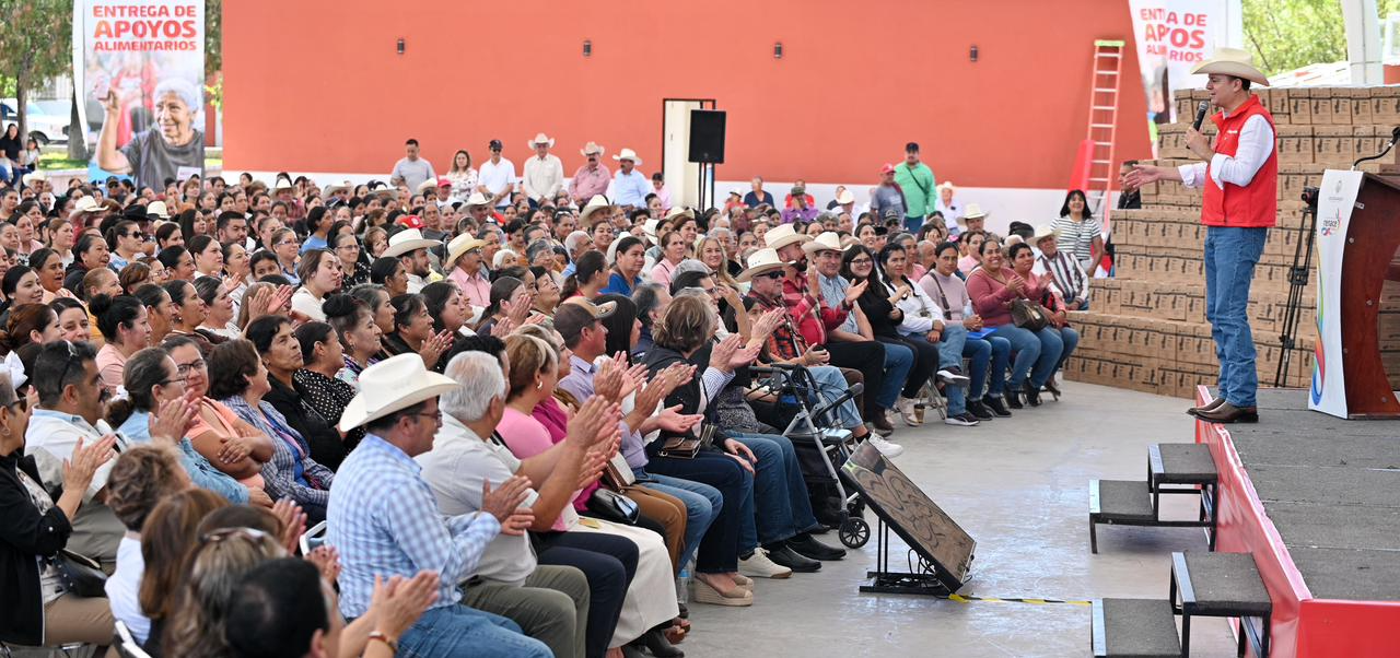 San Juan del Río, Dgo.- El gobernador Esteban Villegas Villarreal anunció una serie de obras y programas sociales para fortalecer la infraestructura y el bienestar de las familias de San Juan del Río, durante el encuentro con beneficiarias de la Tarjeta Madre en la Velaria del Parque Municipal.