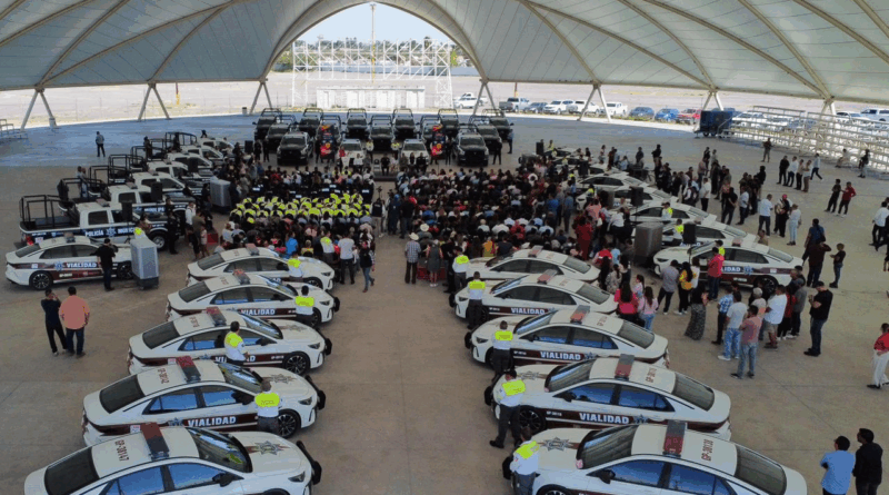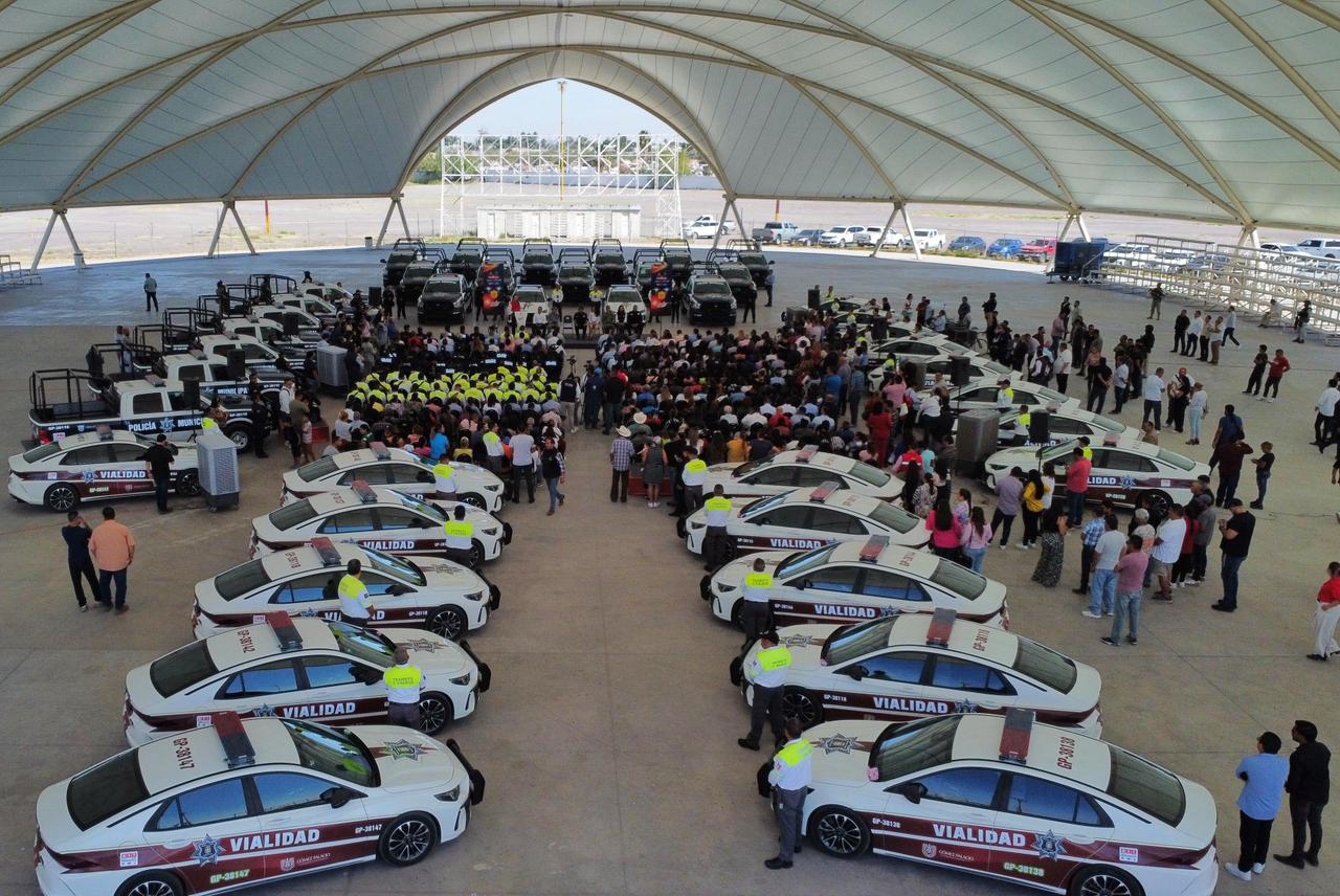 Gómez Palacio, Dgo.- Con más patrullas y mejor vigilancia, las familias de la Laguna contarán con mayor tranquilidad y seguridad. Así lo expresó el gobernador Esteban Villegas Villarreal, al poner en operación junto con la presidenta municipal de Gómez Palacio, Betzabé Martínez Arango, un total de 43 unidades de seguridad pública y vialidad, resultado del trabajo en coordinación y unidad que distingue a esta región y que fortalece las acciones de prevención en beneficio de la ciudadanía.