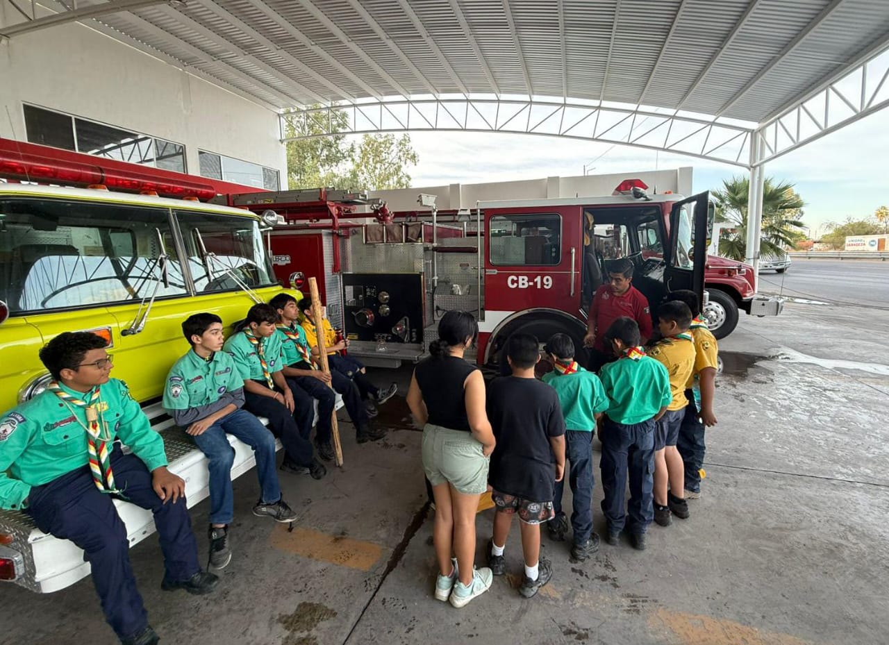 Lerdo, 30 de octubre de 2025.- Por instrucciones de la Presidenta Municipal Susy Carolina Torrecillas Salazar, la dirección de Protección Civil y Bomberos en Lerdo recibió en sus instalaciones a un grupo de Boy Scouts, quienes realizaron un recorrido guiado para conocer las labores y el funcionamiento de la corporación.