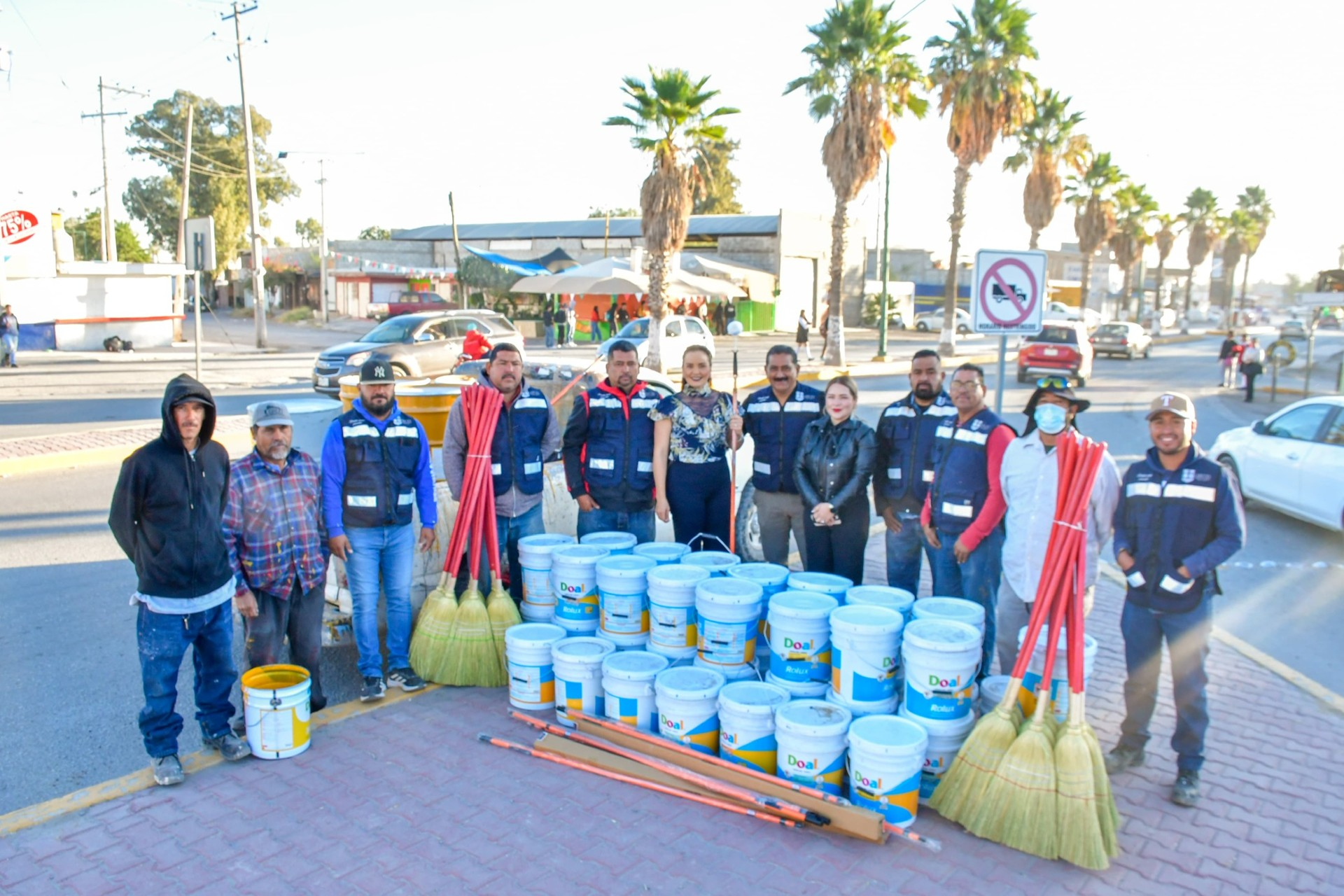 Como parte de las acciones del programa Vialidades Seguras y de “Urbanización Ordenada” que promueve durante su administración, la Alcaldesa entregó mil litros de pintura amarilla, 10 tanques de solvente, rodillos, extensiones, y escobas, con el fin de mejorar la imagen de esta importante vialidad.
