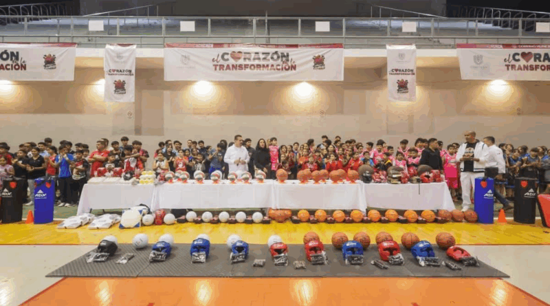 Gómez Palacio a 20 de noviembre del 2025.- La presidenta municipal de Gómez Palacio, Betzabé Martínez Arango, encabezó la entrega de material a escuelas municipales de diversas disciplinas deportivas, con el objetivo de fortalecer la formación de la niñez y juventud gomezpalatina, brindando apoyo en su camino a las eliminatorias municipales, estatales y regionales rumbo a la Olimpiada Nacional. En el evento realizado en el Auditorio Centenario, se contó con la presencia de más de 450 niñas, niños, adolescentes y jóvenes que practican disciplinas como básquetbol, volibol, box, judo, béisbol, softbol y artes marciales mixtas en las escuelas municipales del Deporte. La alcaldesa Betzabé Martínez realizó la entrega de este equipamiento con un mensaje de aliento a los atletas, reconociendo su esfuerzo y el respaldo de sus familias y entrenadores. “Hoy estoy aquí presentándome ante ustedes como una aliada del deporte; mientras yo sea presidenta municipal, aquí tendrán el material que requieren para prepararse y demostrar el talento que los lleve a poner en alto el nombre de Gómez Palacio”, expresó. Carlos Alberto Martínez Padilla, titular de la Dirección del Deporte, informó que estas escuelas operan diariamente en espacios como el Gimnasio Auditorio Centenario, la Unidad Deportiva Filadelfia, el Gimnasio Luis L. Vargas, el Auditorio Ibarra Rayas y el Centro Deportivo San Antonio, entre otros, brindando atención y entrenamiento a nuevas generaciones de deportistas. El material entregado incluye balones para distintas disciplinas: costales de box, manoplas, guantes, caretas, arreos para cátcher, pelotas, bases, redes, conos, silbatos y demás insumos indispensables para el desarrollo de entrenamientos y competencias. Con estas acciones, el Gobierno Municipal reafirma su compromiso con el impulso al deporte, brindando a las nuevas generaciones las herramientas necesarias para competir en eliminatorias municipales, estatales y regionales rumbo a la Olimpiada Nacional.