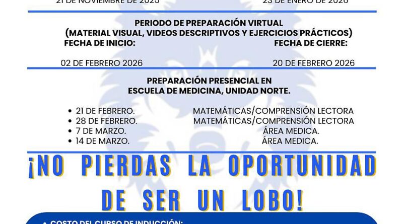 PIEDRAS NEGRAS, Coahuila. 24 de noviembre de 2025. La Universidad Autónoma de Coahuila, a través de la Escuela de Medicina Unidad Norte, invita a jóvenes interesados en ingresar a la Licenciatura en Médico Cirujano al Curso de Preparación para el Examen de Admisión para el ciclo enero-junio 2026.