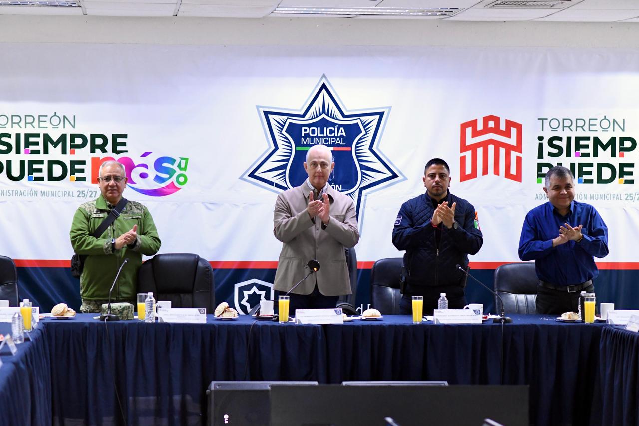 Esta mañana, durante la octava reunión semanal de seguridad, el alcalde Román Alberto Cepeda González agradeció el compromiso de las corporaciones de los tres órdenes de Gobierno y reconoció su esfuerzo y trabajo permanente por mantener a Torreón y a Coahuila en paz.
