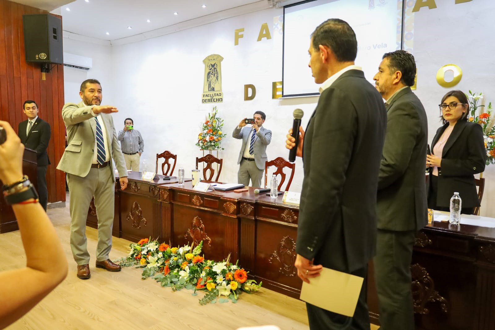 Por su parte, el director Jesús Caballero Vela, agradeció la confianza de la comunidad de la Facultad de Derecho, puesto que esta elección no solo representa un logro individual, sino la voluntad y el compromiso de docentes, alumnos que cree en el trabajo en equipo, en la institucionalidad y en el futuro compartido de la Facultad.