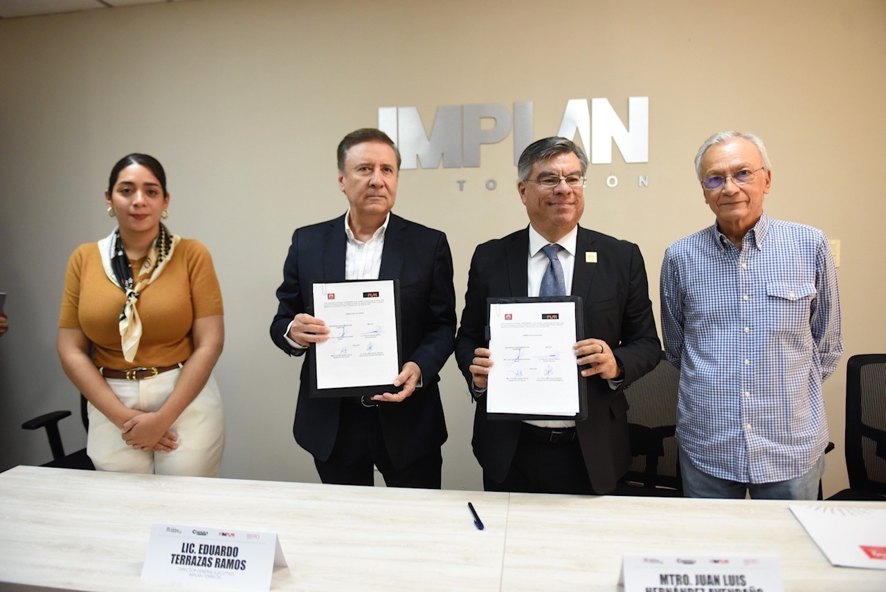 Con el propósito de fortalecer la generación de conocimiento aplicado y contribuir al desarrollo estratégico de la ciudad, el Instituto Municipal de Planeación y Competitividad de Torreón (IMPLAN) y la Universidad Iberoamericana, firmaron esta tarde un convenio de colaboración que permitirá impulsar proyectos conjuntos en beneficio del municipio, y la formación académica.