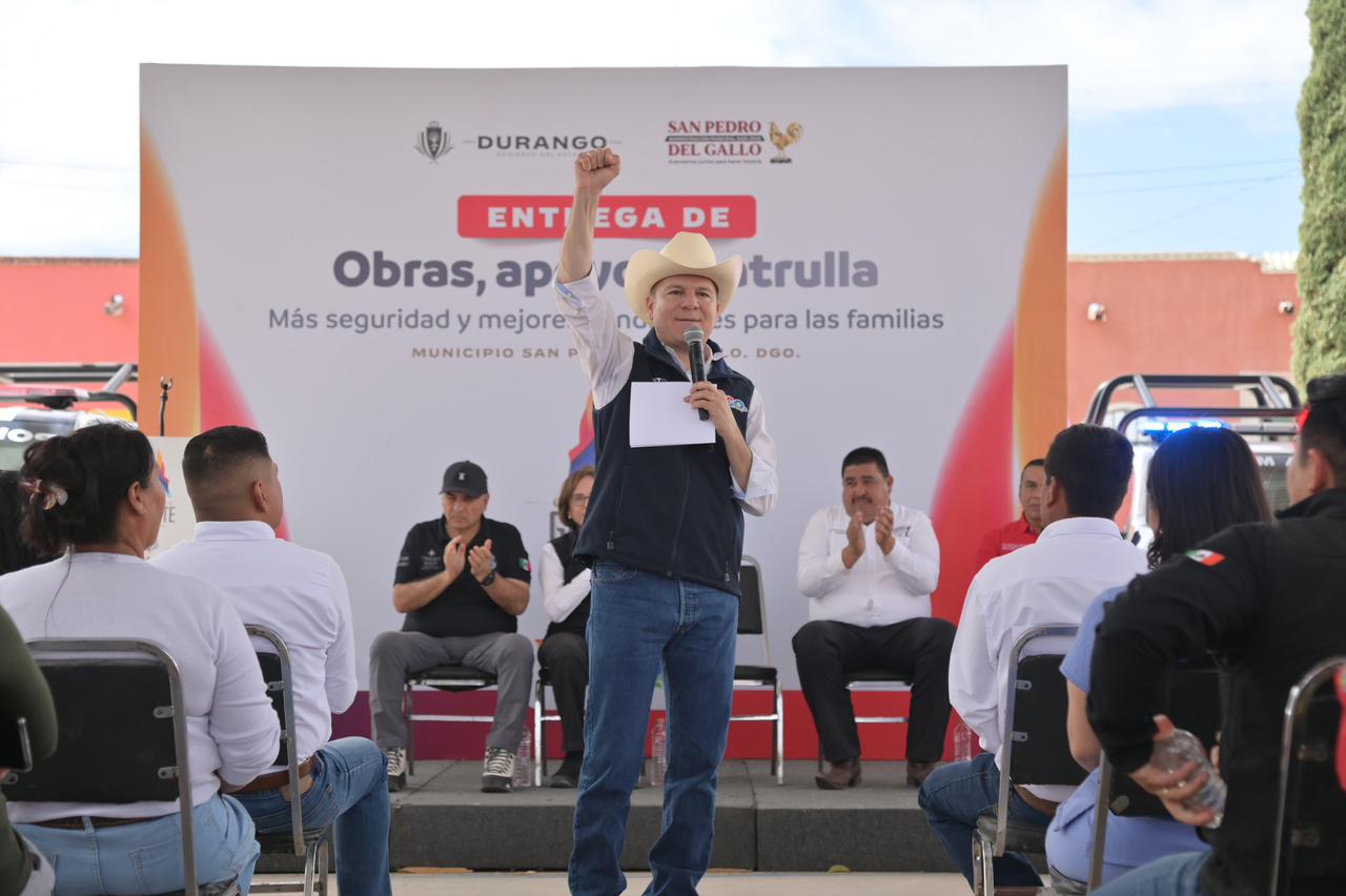 San Pedro del Gallo, Dgo.– Como parte de la gira de trabajo que realiza por los 39 municipios del estado, el gobernador Esteban Villegas Villarreal, acompañado por el presidente municipal Reginaldo Carrillo Valdez, visitó San Pedro del Gallo, donde anunció el inicio de estudios de exploración minera que podrían abrir una nueva etapa de desarrollo económico para el municipio y comunidades cercanas.