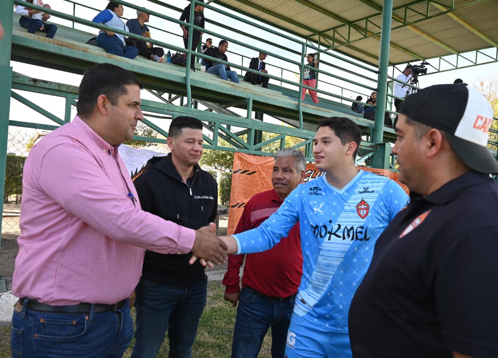 El edil fue recibido por el entrenador José Luis Moreno y el arquero Ernesto Leal, este último responsable de detener el tiro penal con el que se dio la bienvenida oficial al Club Calor al Municipio de Lerdo, donde disputarán sus encuentros como locales durante este torneo.