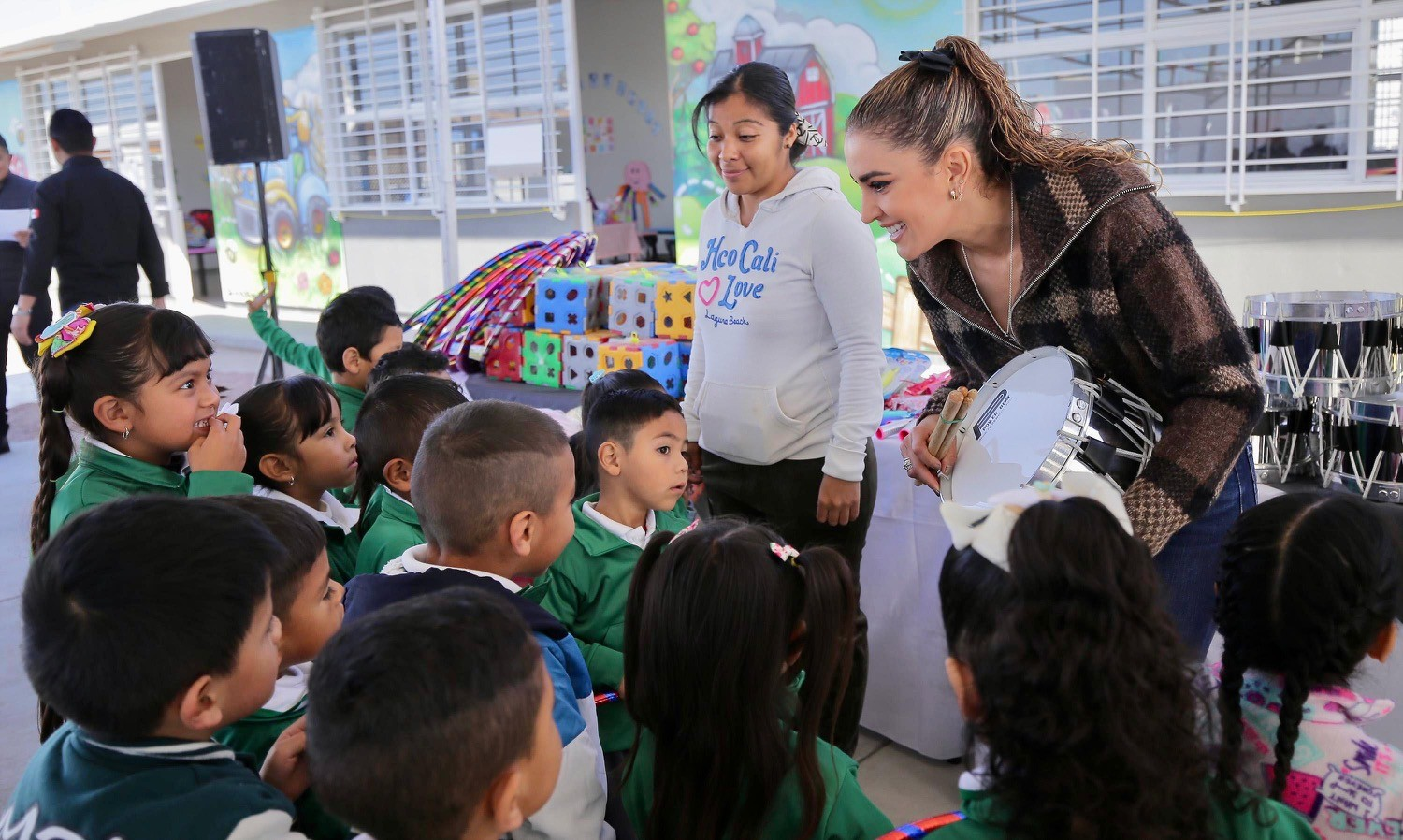 Como parte de un compromiso más cumplido del gobernador Esteban Villegas y del alcalde capitalino, Toño Ochoa, la presidenta del DIF Estatal, Marisol Rosso, entregó en su representación, los instrumentos para la banda de guerra del Jardín de Niños “Libertad”, ubicado en el fraccionamiento Cristóbal Colón, esto luego de que alumnos y docentes hicieron la petición durante la inauguración de esta escuela de nueva creación, la cual fue atendida de inmediato.