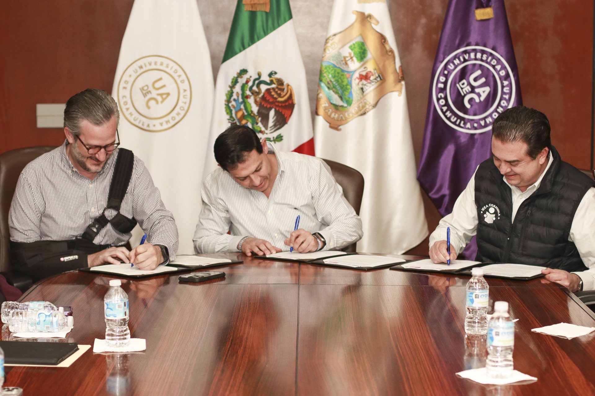 La reunión se llevó a cabo en la Sala de Juntas de Rectoría, donde el documento fue signado por el rector de la máxima casa de estudios, Octavio Pimentel Martínez, el secretario de Educación en Coahuila, Emmanuel Garza Firshburn y el director general del IEEA, Jaime Bueno Zertuche, como testigos, la diputada y coordinadora de la Comisión de Jóvenes y Niñez, María del Mar Treviño Garza, la coordinadora de Unidad Sureste de la UAdeC, Eva Kerena Hernández Martínez.
