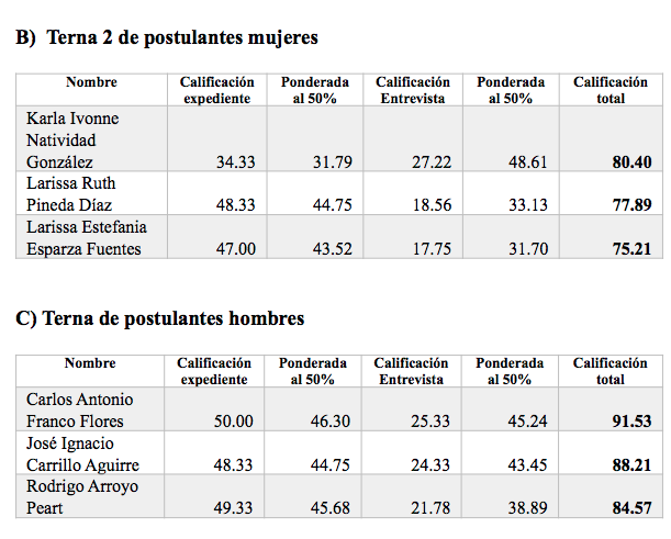 por cada una de las vacantes existentes. En el caso de las dos ternas de