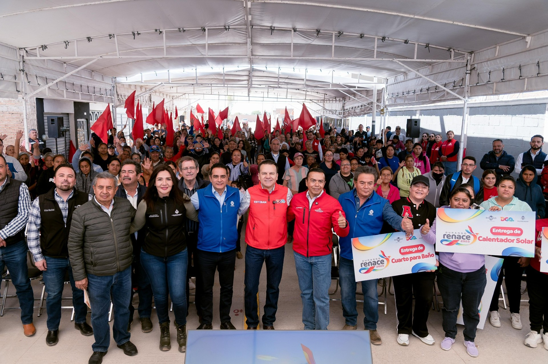 El gobernador Esteban Villegas destacó la magnitud de las obras entregadas y reafirmó su compromiso con la comunidad: “Hoy entregamos 62 cuartos dormitorio, 282 techos firmes de concreto y 154 muros de vivienda, con una inversión superior a los 35 millones de pesos. Además, sumamos tinacos, boilers solares y esta calle pavimentada, que aún falta por completar, pero nos la echamos. Seguiremos haciendo obra, construyendo caminos, calles y bulevares. Toño ya les platicó de la calle Río Grande, que será una gran obra”, expresó.