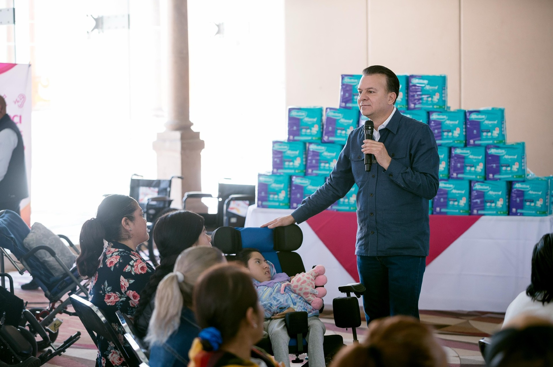 Para mejorar la calidad de vida de niños y adultos mayores con discapacidad, el gobernador Esteban Villegas Villarreal y la presidenta del DIF Estatal, Marisol Rosso Rivera, entregaron sillas de ruedas, auxiliares auditivos y pañales. Estos apoyos permiten a los beneficiarios desplazarse con mayor facilidad, optimizar su autonomía, facilitar su integración social, mejorar su comunicación y favorecer su desarrollo personal.