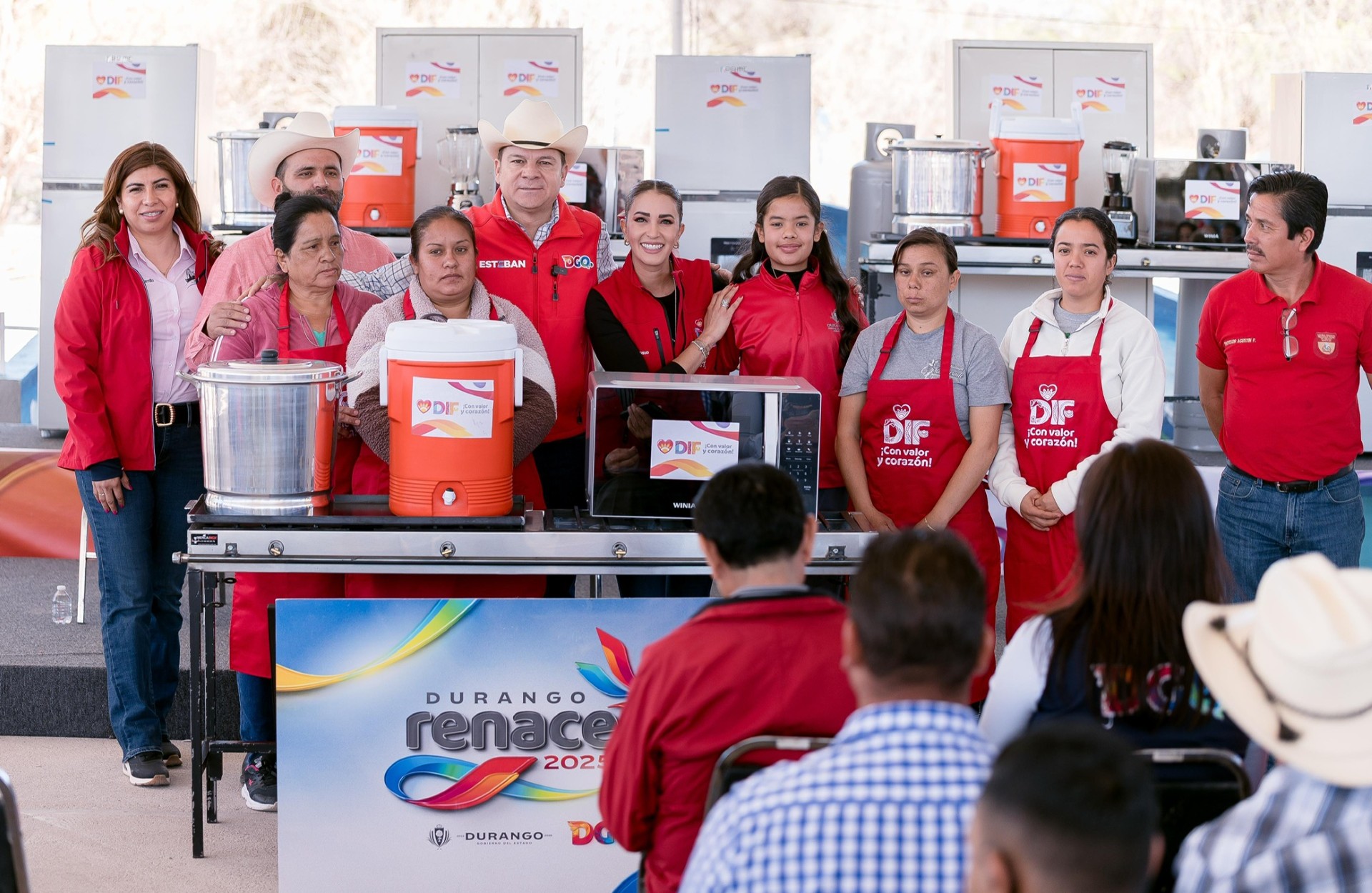 San Juan del Río, Durango.- En este 2025, Durango cuenta con mil comedores escolares que benefician a más de 59 mil niños y niñas con desayunos calientes gratuitos, así lo informó la presidenta del DIF Estatal, Marisol Rosso Rivera, acompañada por el gobernador Esteban Villegas Villarreal y el alcalde José Manuel Gallegos, al entregar equipamiento para los comedores de las primarias Francisco Primo de Verdad, Benito Acosta y la secundaria 99 de San Juan del Río, con esta acción, se reafirma su compromiso con la nutrición y el bienestar de la niñez duranguense.