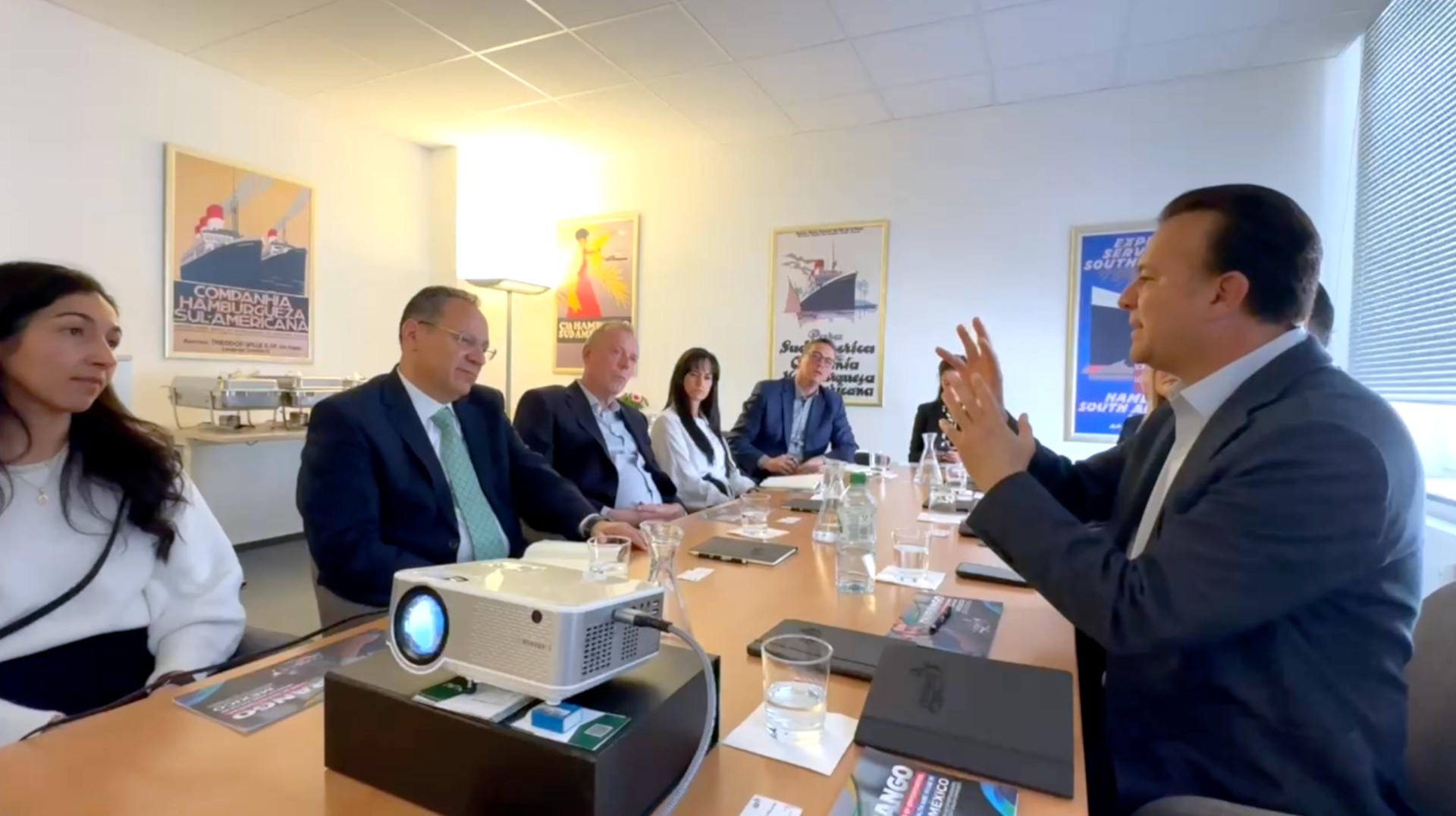 Hamburgo, Alemania. – Como parte de su agenda internacional para impulsar el desarrollo económico de Durango, el gobernador Esteban Villegas Villarreal sostuvo una reunión con representantes de empresas, instituciones financieras, centros académicos y autoridades locales en Hamburgo, con el objetivo de fomentar nuevas oportunidades de inversión bilateral entre Alemania y México.
