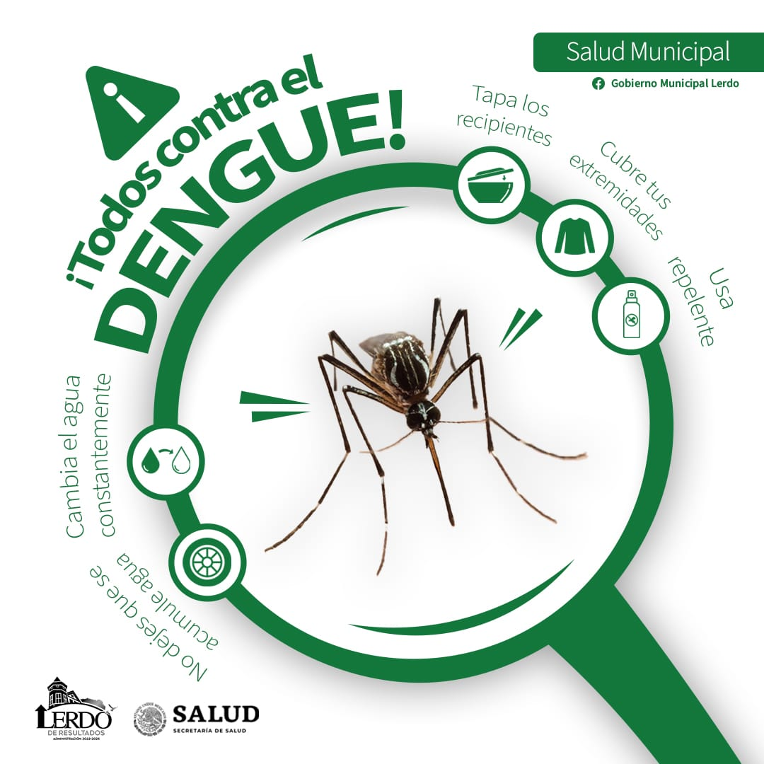 Lerdo, 04 de abril 2025.- El Gobierno Municipal de Lerdo, por instrucción de la Secretaría de Salud del Estado, hace un exhorto a la ciudadanía para intensificar las acciones de prevención contra el mosquito transmisor del dengue y los arbovirus (virus transmitidos por artrópodos, como mosquitos y garrapatas, que pueden causar enfermedades en humanos y animales).